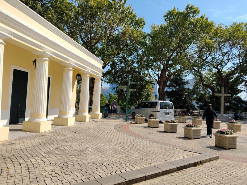 兵条斜巷往北几十米,右侧有条台阶路。上次我和父母来也是往这里走的。那时官也街还不是网红街,没啥知名度,这里也没啥游客。台阶两边是六棵大树。上台阶后分道口,上次我和父母是往右走到底,往左下坡再一直走,过自动步道后上天桥就是威尼斯人。今天往左走,先下坡过嘉模泳池。
