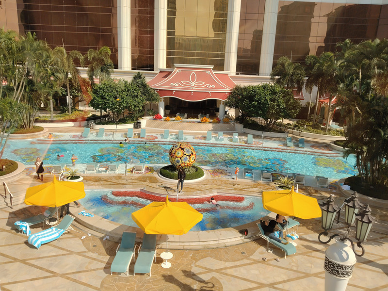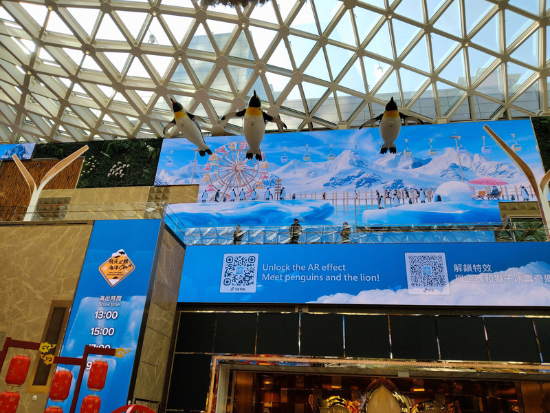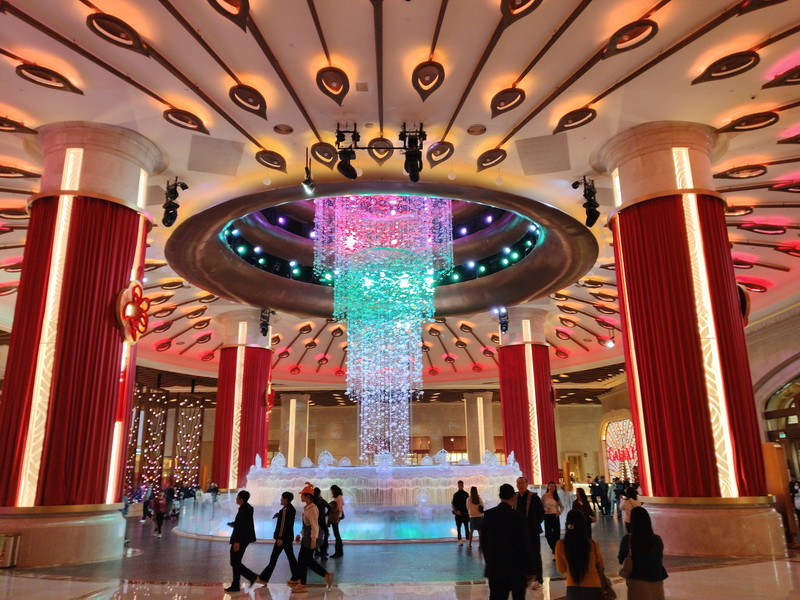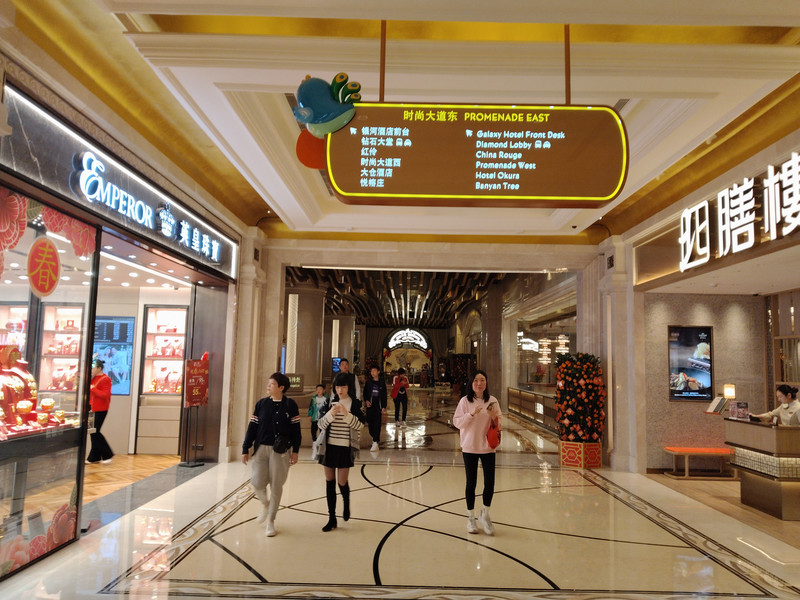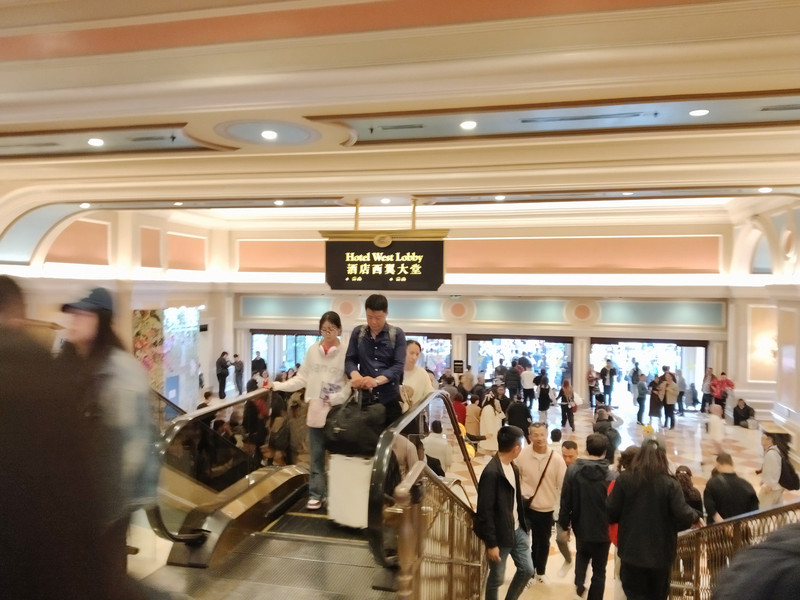 春节期间每天中午十二点到晚上十二点开放。比平时提前了四个小时。除了这里,前面酒店里一楼,二楼也有出入口。老老实实排队,不要想着去前面酒店里二楼的那个出入口,蹭住店游客的免排队VIP通道。现在去了也混不进去,工作人员会仔细的查验你的房卡。这会来坐的人还不算太多。到了晚上排队肯定是一条长龙。