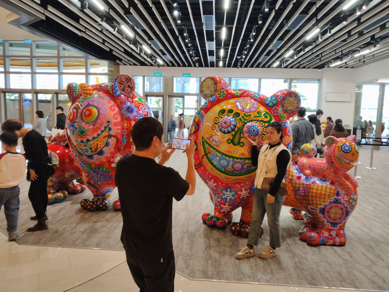 美狮美高梅:内部有艺术展和免费黑糖珍珠奶茶供应,建筑外观现代感十足。