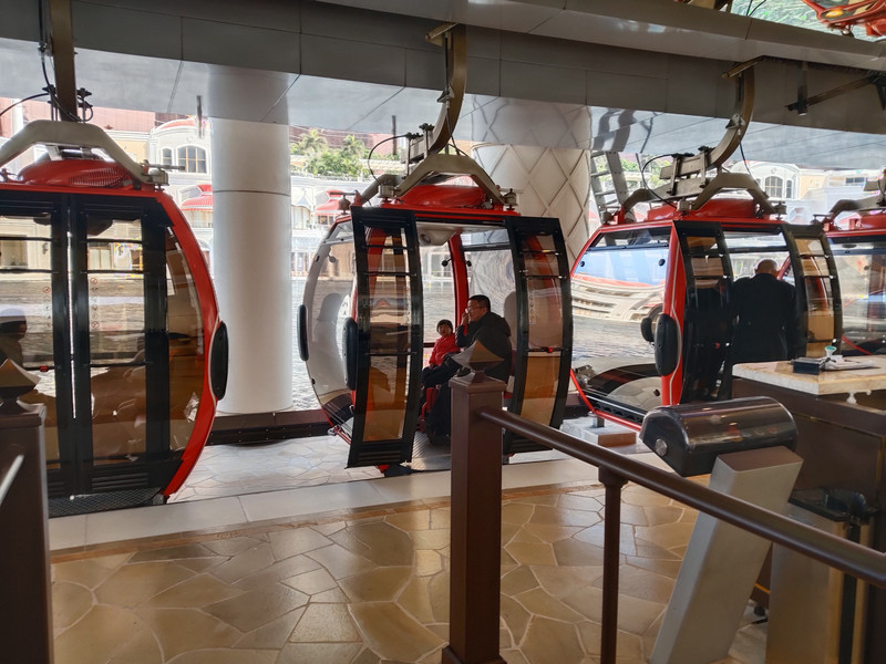 坐在缆车上,看到酒店平台上还有个带游泳池的空中花园。