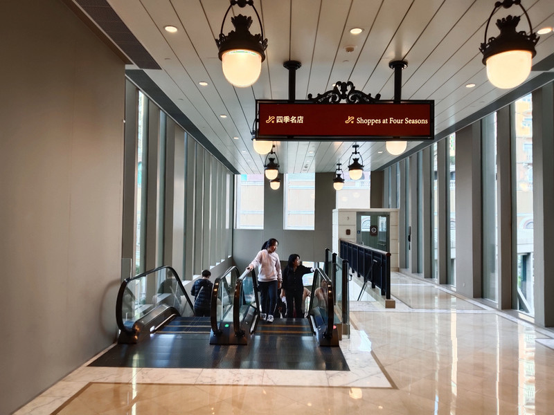 看见CHANEL 往左侧 ,走十几米后,右侧上扶梯,就到威尼斯人购物中心 。