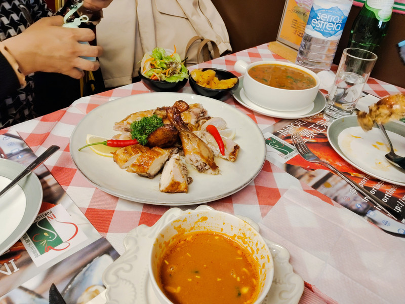 等了二十多分钟,礼拜鸡来了,其实就是烤鸡,不过这礼拜鸡倒是外焦里嫩,非常美味。红豆饭看似像稀饭,一会功夫就收汁了,吃上去很厚实。里面的红豆其实就是芸豆。这顿葡国菜总体吃的还是很舒服的。买单时可以用微信,扫码后自动换算成人民币412元。
