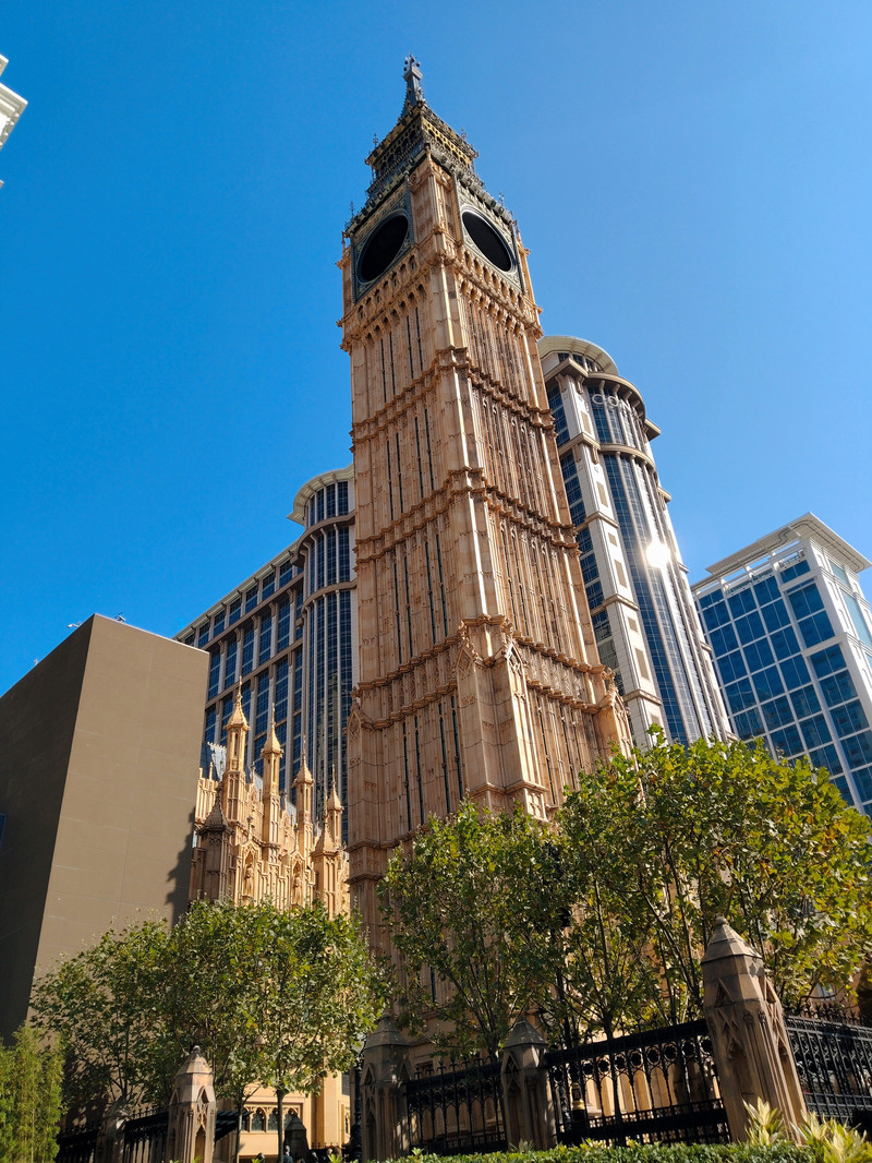 美狮美高美出来旁边去看伦敦人的钟楼。对面是新濠天地。