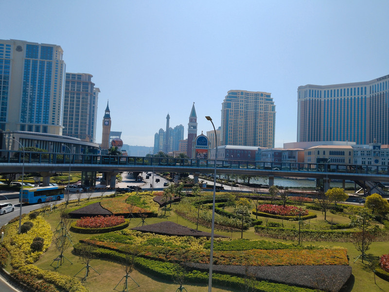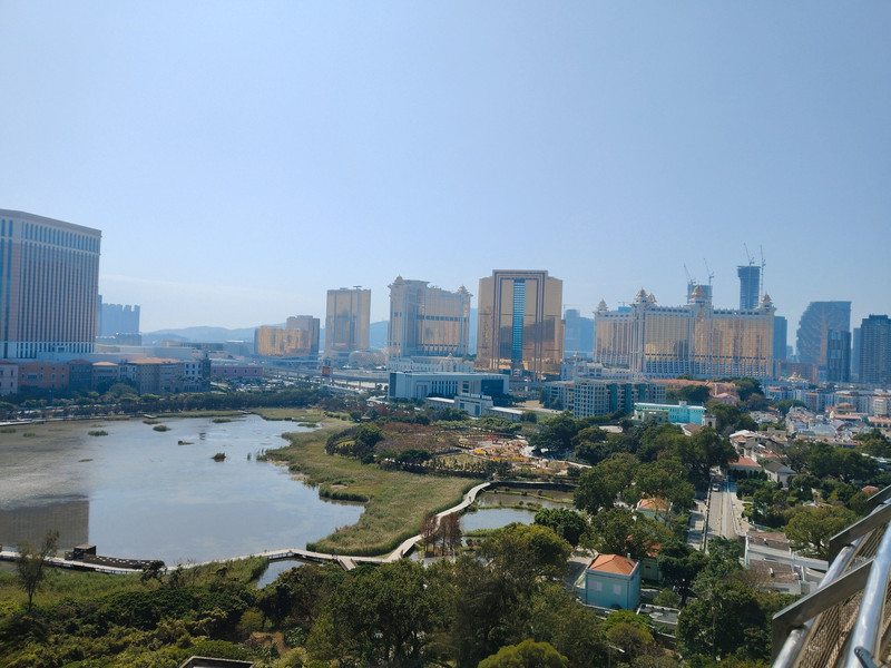 在这里鸟瞰氹仔全景。远望威尼斯人,伦敦人,巴黎人,美狮美高美,永利皇宫,银河。看的真舒服,空气也好!