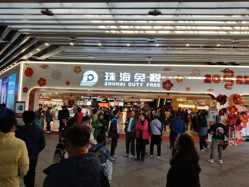 出了澳门关闸,有个珠海免税店。里面东西很多,在促销打折。店也很大,据说是广东最大的免税店。