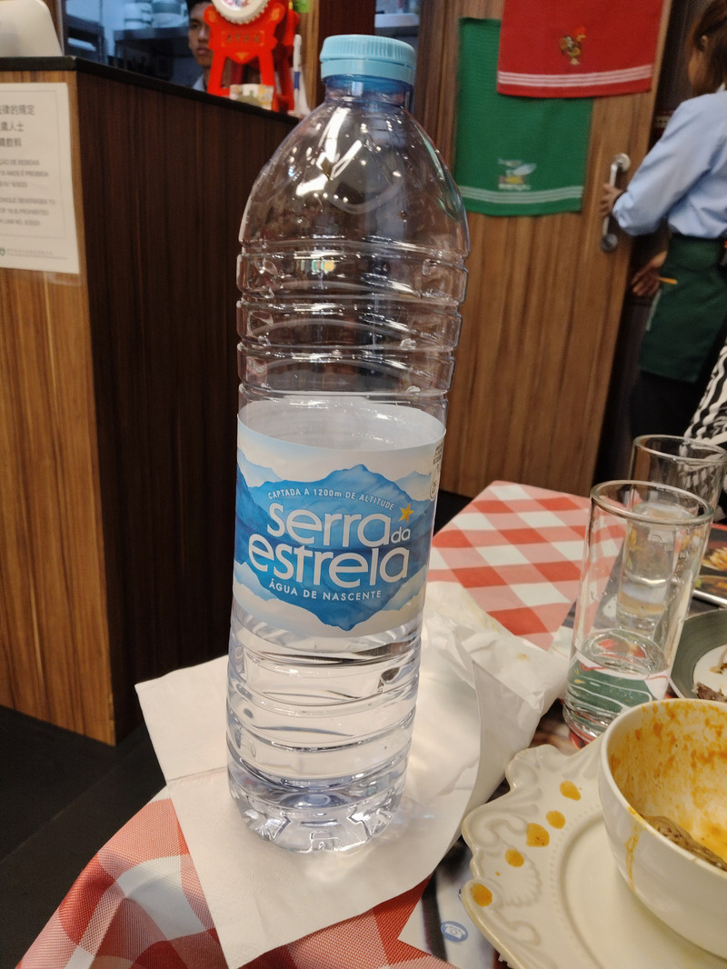 餐厅内禁止自带饮料酒水。喝了桌子上那一大瓶矿泉水。这水是欧洲进口的,35澳门元。感觉挺甘洌爽口的。