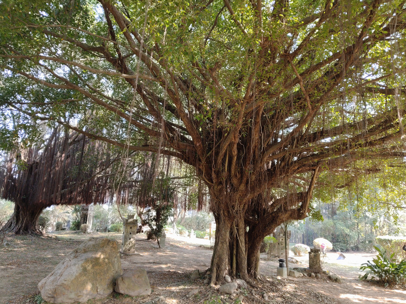 有棵盘根错节的参天大树,树龄估计上百年了。