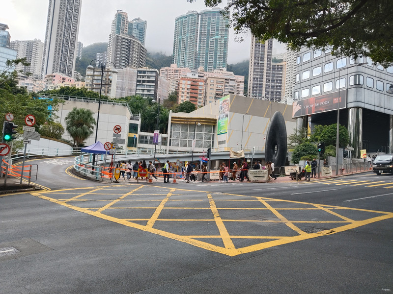 下山后出口出来。发现道路管制,过不到对面去。没法回到中环站坐地铁了。只能往前走,到金钟站坐地铁。经过香港公园,之前两次来都没走过这里,今天来看看。