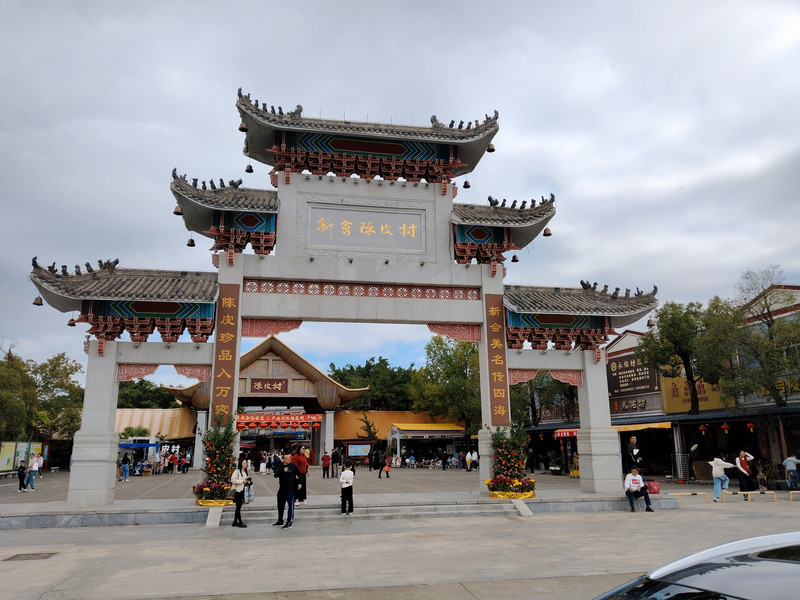 停车场爆满,路边也停满了。只能让老婆儿子,在牌坊这里先下车进去转转。我去找停车位。还好转了一圈,一辆广州的车子走了,赶紧停好。就在牌坊旁边,走过去也近。