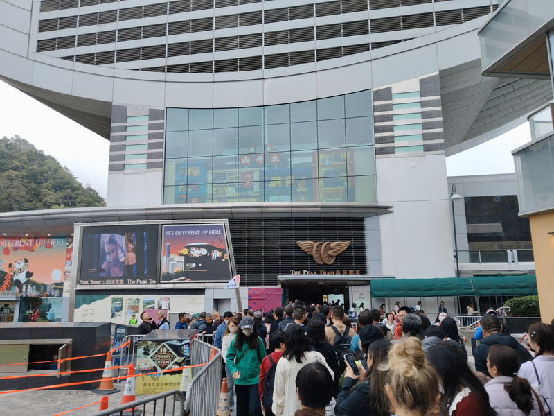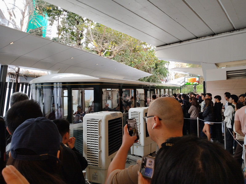 看似人很多,其实很快。港澳的景区都是很有秩序的。有条不紊!排队分两列,一列是已经扫码购票的。另一列到售票处购票的。两列上车的排队用时差不多。