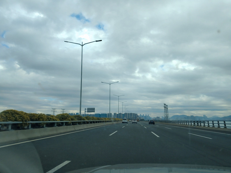 和前天一样,缓行了二十分钟就通畅了。转入沿江高速去前海。19年春节也是走的沿江高速,当时是从东莞虎门出发去前海。沿江高速的车流量始终不大,今天来还是如此。