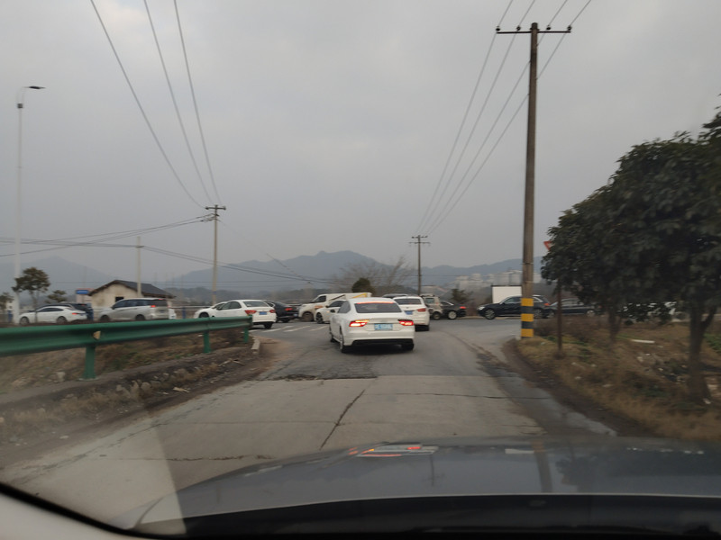 左转上高速连接线的车子排了两三公里。于是我急中生智,先右转旁边的村道。然后掉个头直行就进入连接线了。