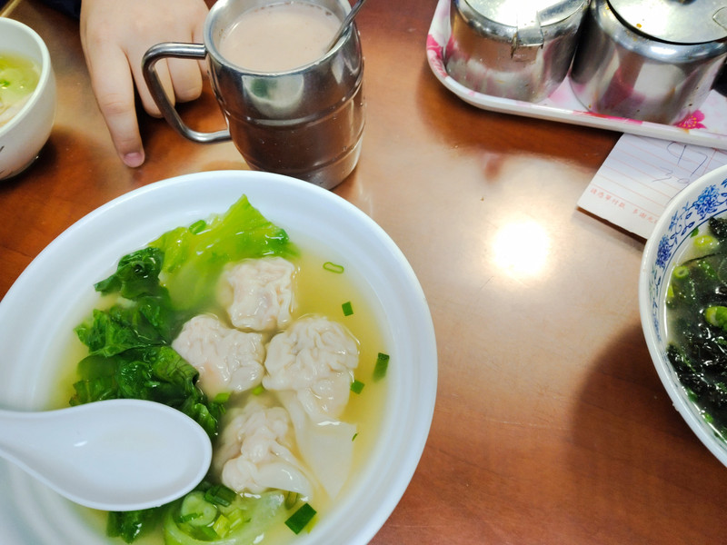水口南服务区不大。在这里吃午饭。大老爷想吃泡面,正好带的泡面还有两桶。老婆和儿子泡面吃。去餐厅买了一份蔬菜。我点了一碗馄饨吃。昨晚住的酒店早餐很丰富,感觉上午在西湖走了一圈,这会到了十一点半还是不饿。