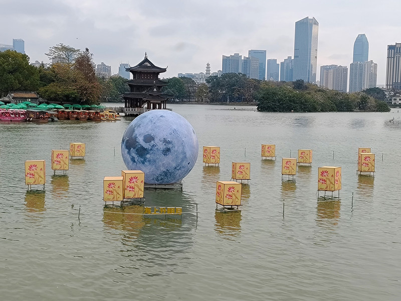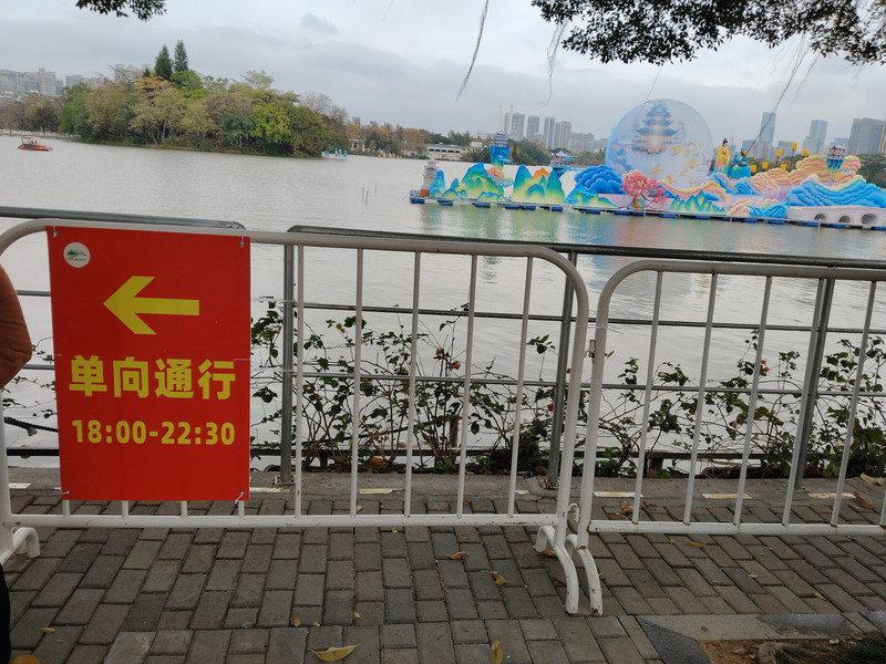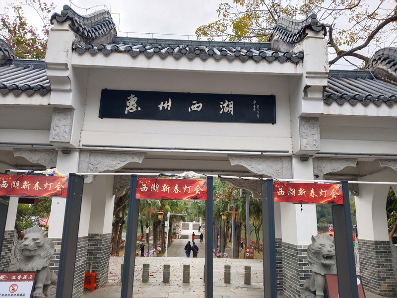 这次住的酒店和上次是同一家。酒店对面就是惠州西湖北门。早上八点多人挺少的。每年春节期间惠州西湖都有灯会,到了晚上就是人潮汹涌。