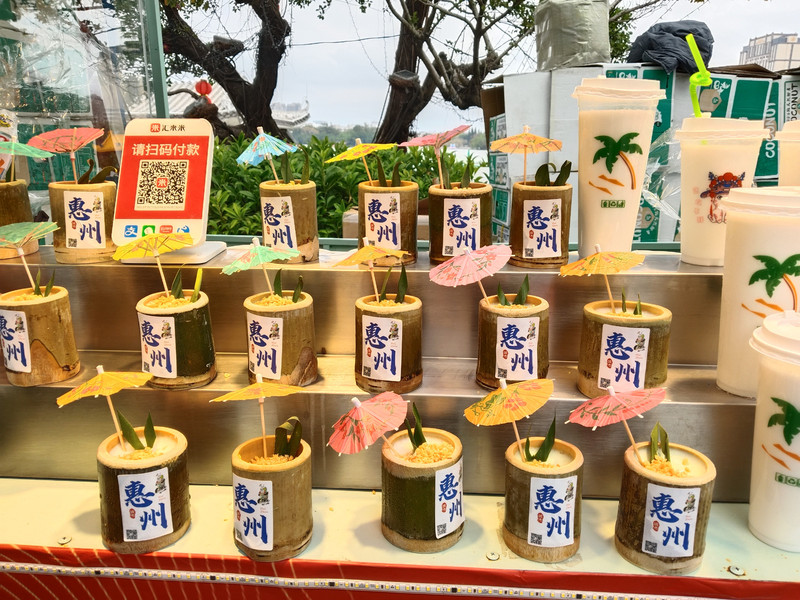去年在潮州古城喝的竹筒奶茶,这里也有。现在各个景区都有文创饮料。