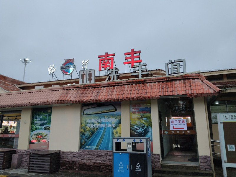 进入江西地界后,你们感受到了气温的明显变化,并在瑞金服务区稍作休息。随着雨势的加大和气温的降低,你们在南丰服务区享用了晚饭,并对服务区的菜品表示了满意。