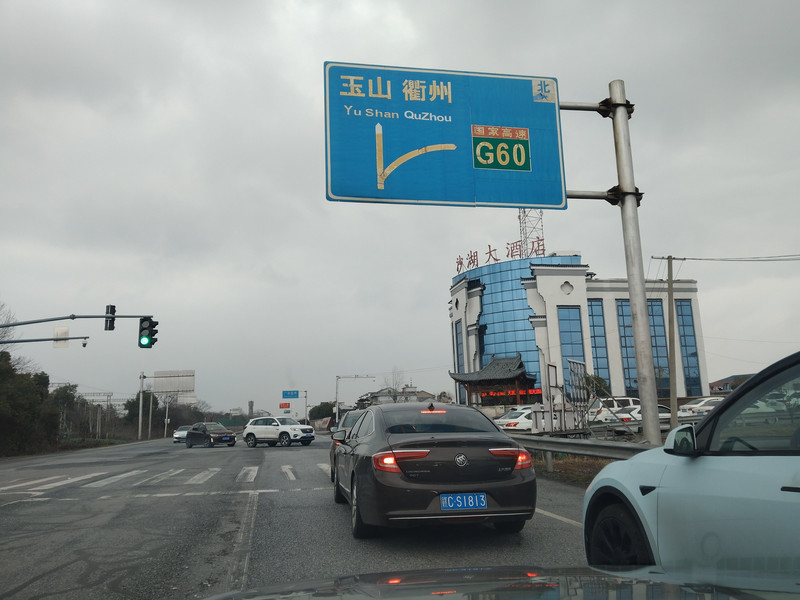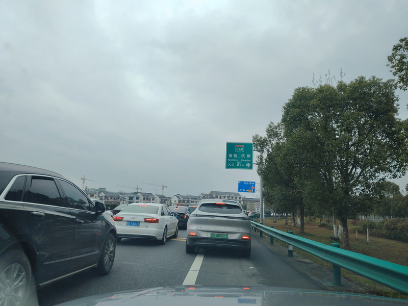 终于上高速了。浙江段已经扩建完毕了。路况不错。虽然目前很通畅,但是根据出发前的研判,往东会越来越难走。果不其然,导航提示到了衢州市区开始连续严重拥堵了。原计划沪昆高速过了衢州市区往北经过G4012转入G25,过淳安,桐庐,富阳转入新通车的S43杭州绕城复线后往北就好走了。一看手机,从淳安到富阳全是断断续续的深红线。