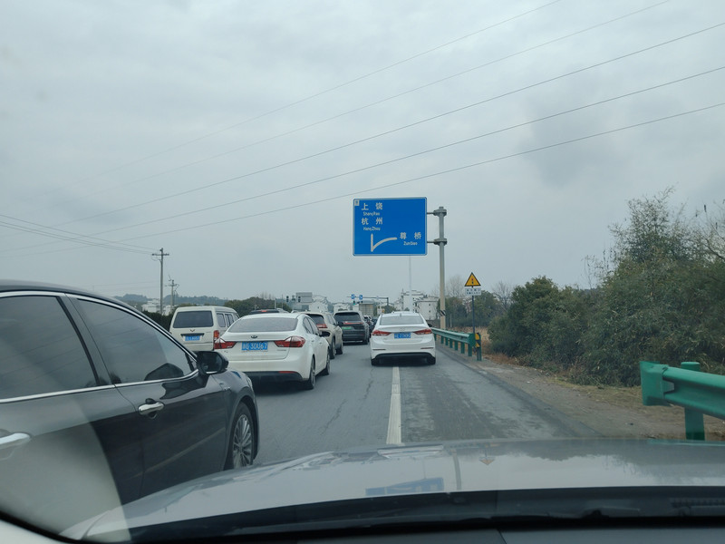 进了宜兴地界,很快在鲸塘再上高速。上高速后往杭州方向车流量也是很大,但总算是通畅的。
