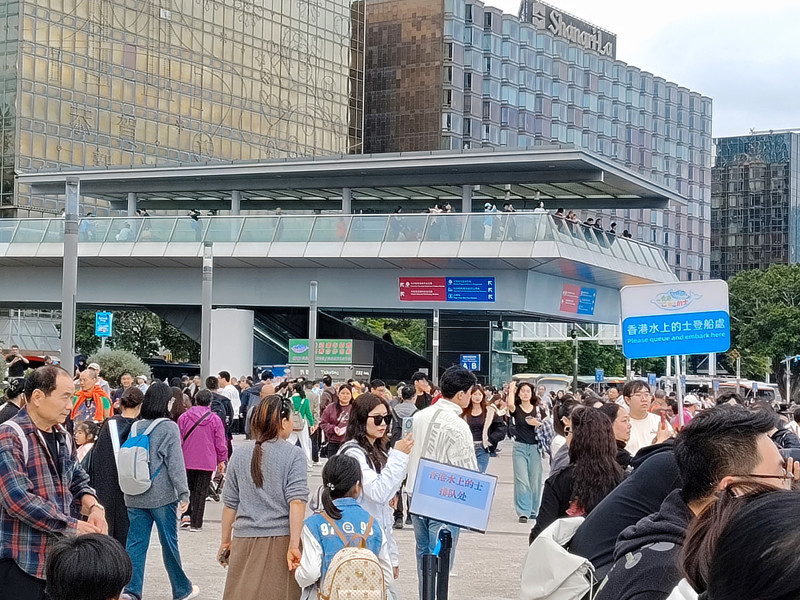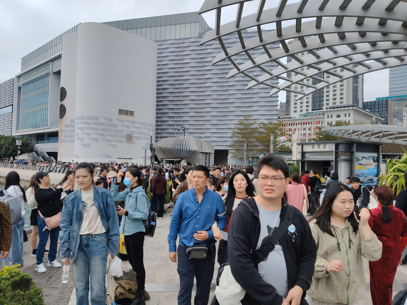 尖沙咀地铁站出来,人行道上全是人挤人。过马路到对面太空馆,几乎是人贴着人走。