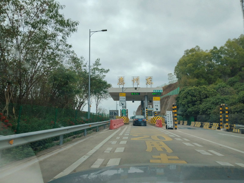 荷坳主线收费站,要靠最左侧两个闸道开过去,不然就是从龙岗出口下高速了。上次走到这里就是走错了,由于当时是年初六晚上了,还有几个小时就高速免费结束了。下去掉头后重新上高速时,已经放下栏杆了,领了张纸质卡