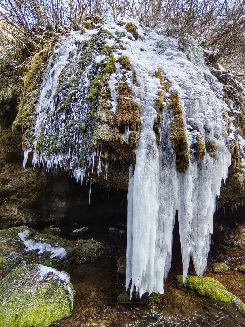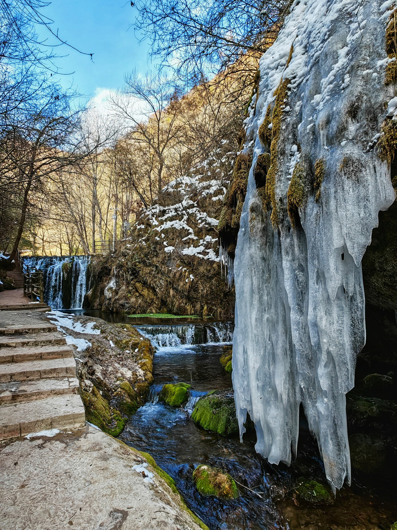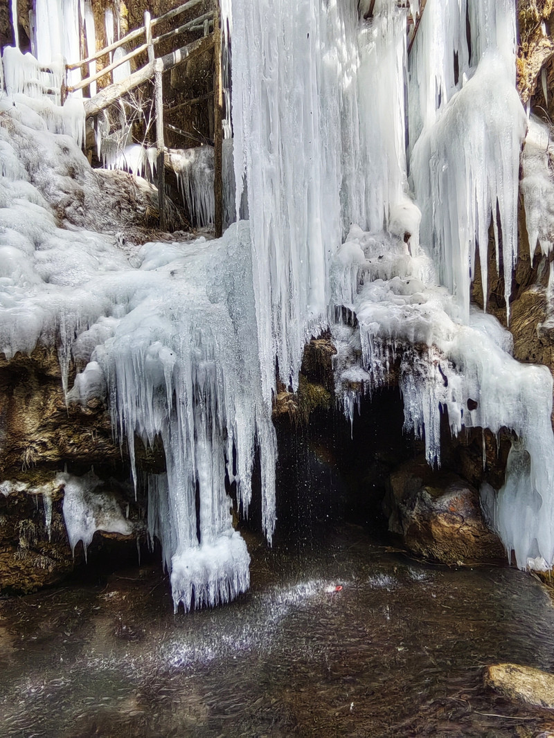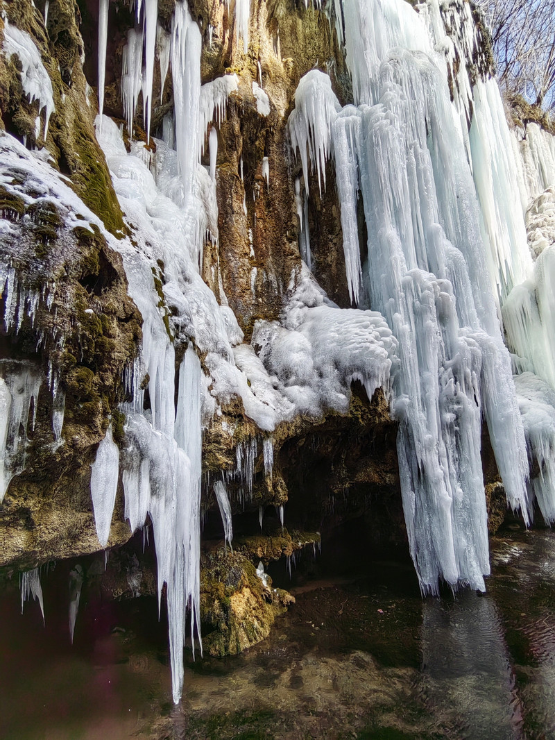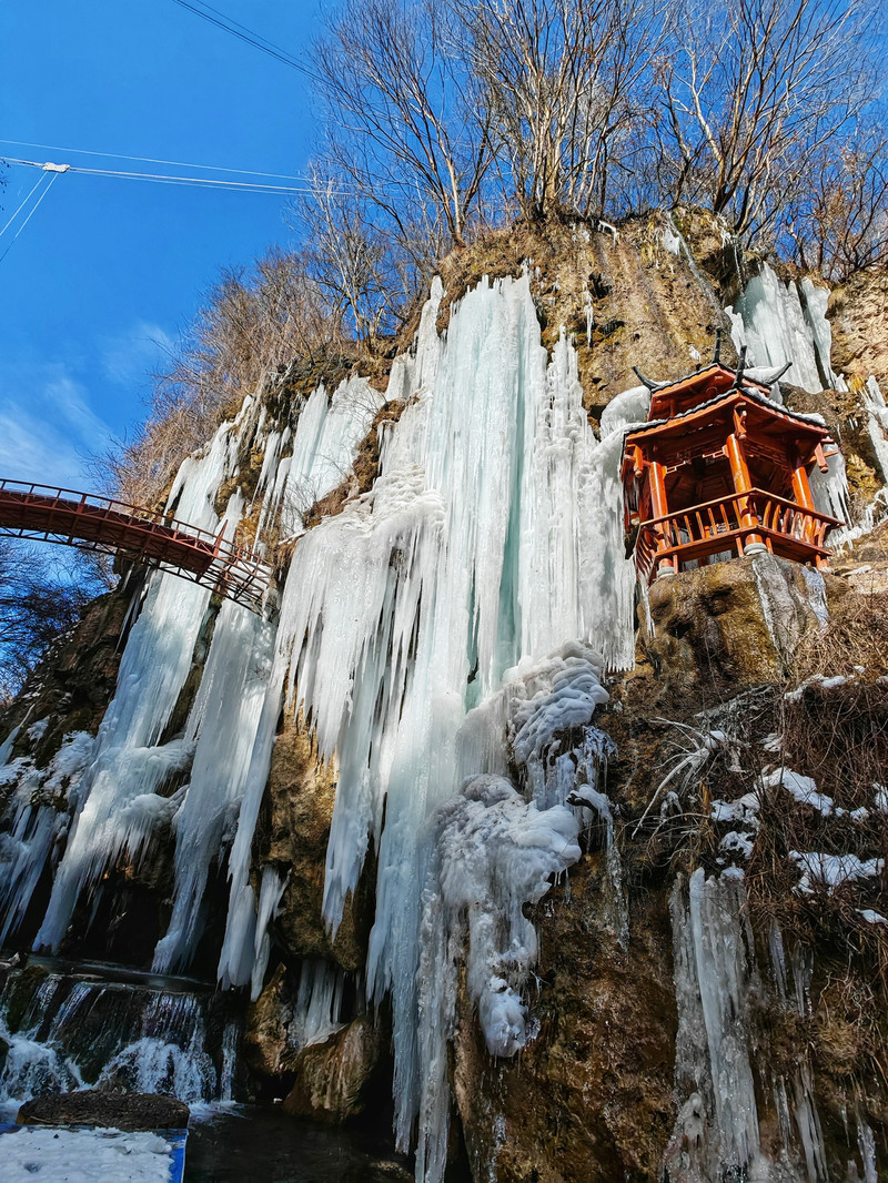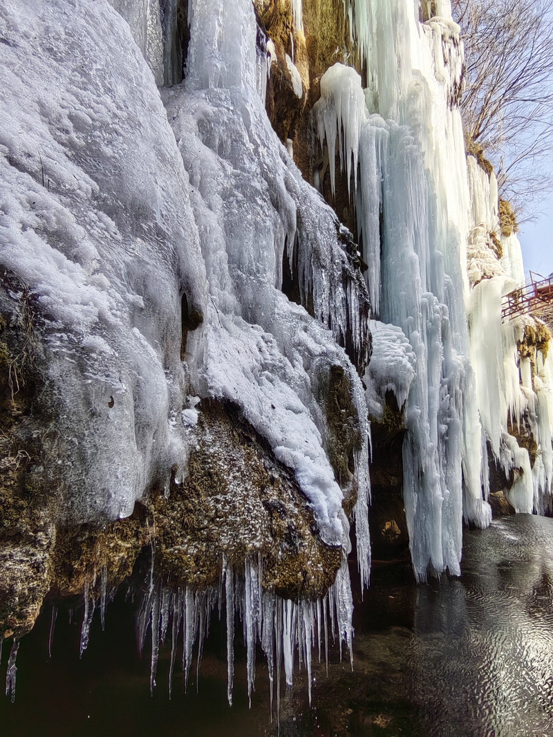 宽150米、高15米的天然冰瀑,气势磅礴,成为双龙湾的奇观之一。冬日里,冰瀑如银帘垂挂,与周围的险峰秀水、幽谷奇石共同构成一幅壮丽的山水画卷。