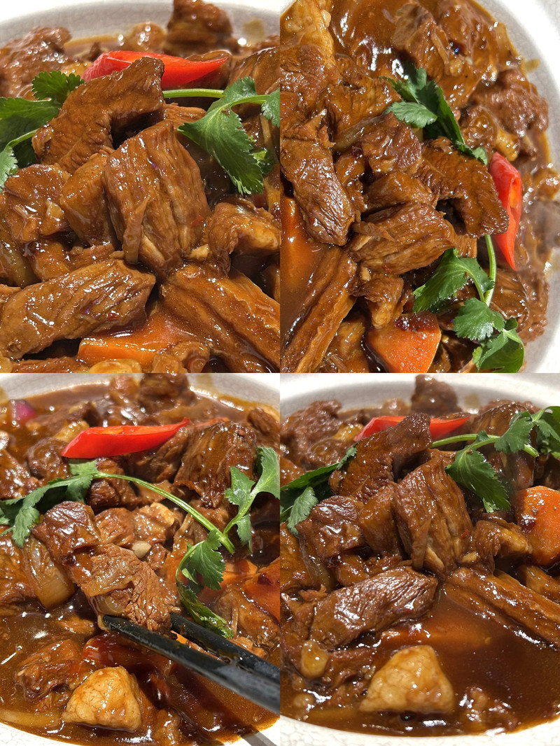 老醋焖牛肉:一上桌那醋香就直往鼻子里钻,牛肉炖得那叫一个烂熟!轻轻一咬就化在嘴里,酸甜的汁水混合着牛肉的鲜美,简直是味蕾的大狂欢!