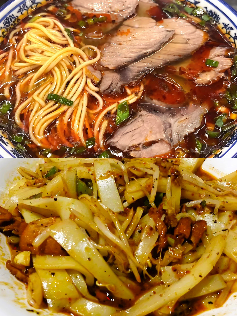 平遥牛肉面:这是另一道特色美食,面条劲道,牛肉鲜嫩,汤头浓郁。