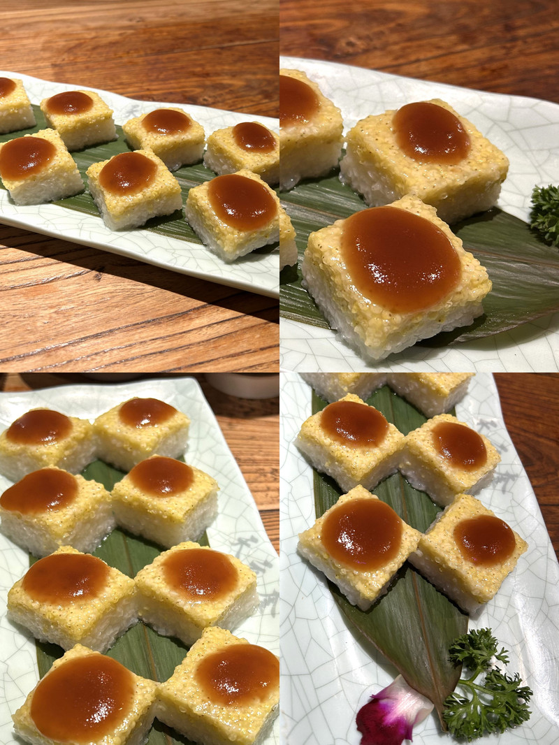 黄米凉糕:这可是我的最爱呦!软糯得不得了,甜丝丝的,凉凉的。吃上一口,整个人都清爽了。特别是淋上那层桂花酱,刹那间变得更加香甜、清新,让人欲罢不能!