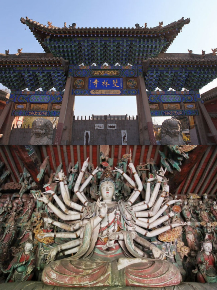 彩塑宝库:寺内保存宋、元、明三代彩塑2000余尊,被誉为“东方彩塑艺术博物馆”。其中千佛殿的“自在观音”与菩萨殿的“千手观音”以动态造型和细腻表情闻名,韦驮像更被梁思成称为“神品”。