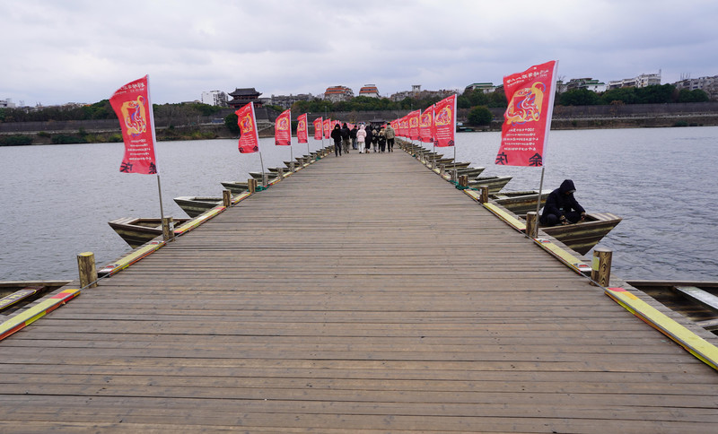 注意事项:浮桥木舟间隙较大,行走时需注意安全;冬季江边风大,建议保暖。