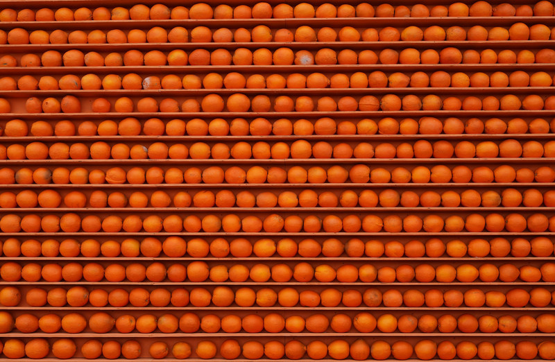 城楼两边木架上一排排橙色赣州脐橙非常醒目,脐橙是赣州的特产之一