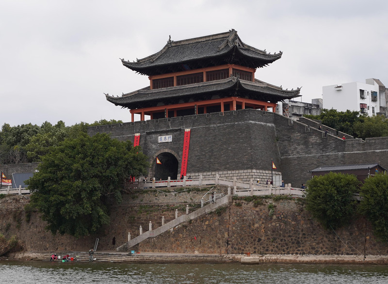 从桥东经过浮桥再走回桥西,西桥头的建春门始建于东晋永和五年(公元349年),是赣州古城的五大城门之一,俗叫“斜步门”,从宋代沿用至今。