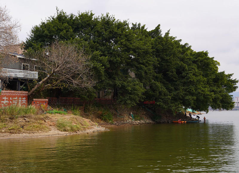 看到贡江里冬泳的市民,桥东一颗大榕树下几位冬游的市民都属于勇士