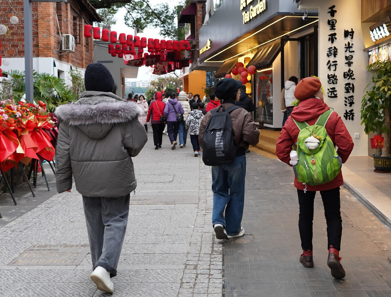 浮桥东头的水东街是一条商业街,建了步道和休闲设施。