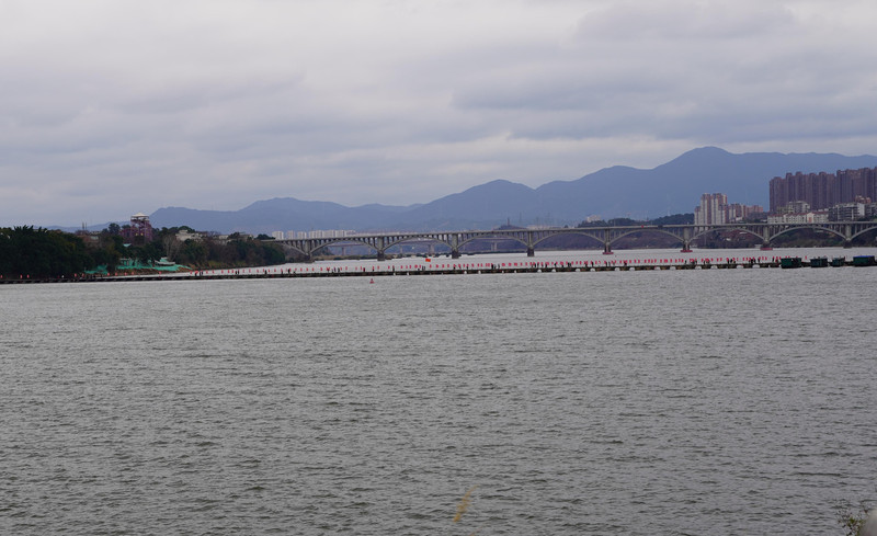 在八镜台可以看到贡江上有一座浮桥。这座浮桥是赣州市人的骄傲。