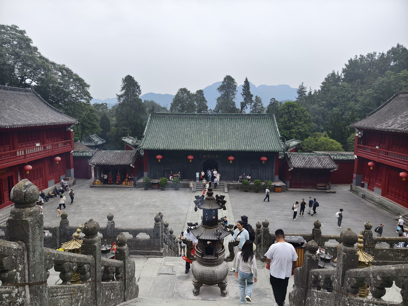 我们上午10到达南岩停车场。今天游客到达南岩后,基本都是去金顶,去南岩宫方向的游客不多,还好我们昨天先去的金顶。