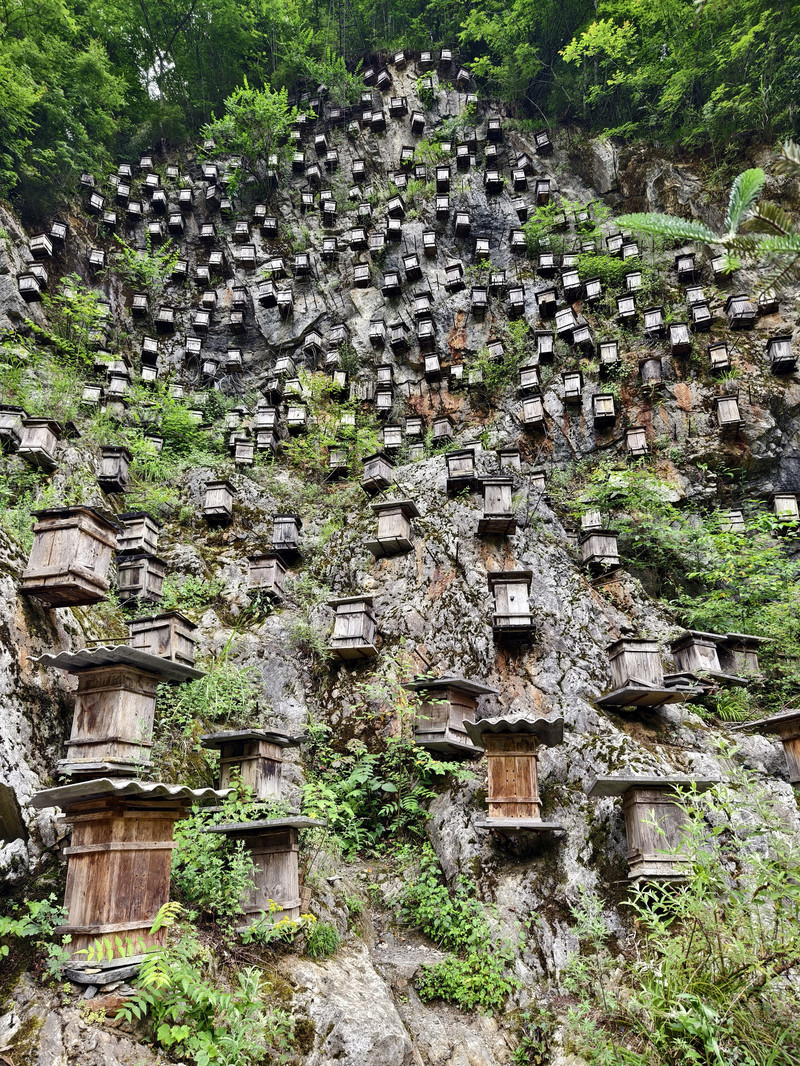 开车继续往里走来到蜜蜂园,这里主要是看建在崖壁上的蜂箱,密密麻麻还挺壮观的。