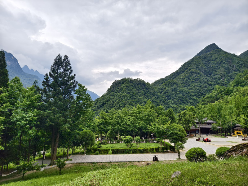 然而,观门山景区的游览却因为突如其来的小雨而略显匆忙。你参观了地下暗河和蜜蜂园,但在熊猫馆时雨势渐大,只好匆匆结束游览返回客栈。不过,傍晚时分雨停后,你再次走出客栈,欣赏到了雨后的云雾美景,并在网红店品尝了当地的特色美食。