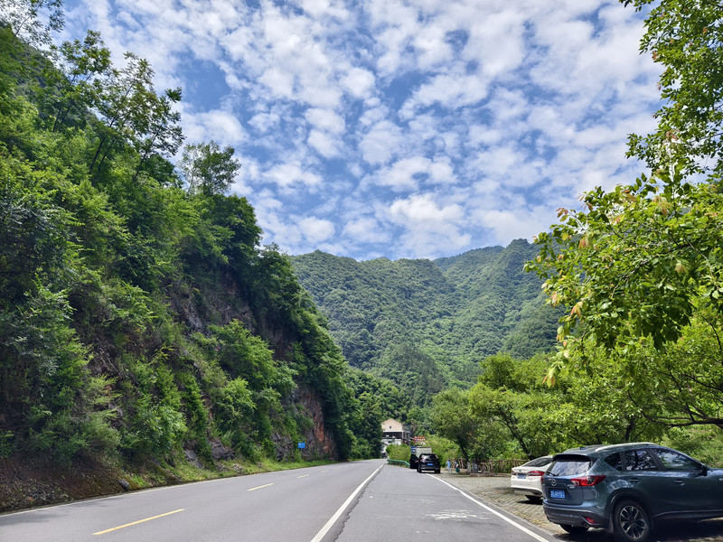 上午9点多开车离开武当山镇,先走高速,从房县下高速后,穿过县城,就是在山间穿行,从一座山到另一座山,路两边郁郁葱葱树木从眼前掠过,美景尽收眼底,在这种路上开车是一种享受。房县境内就有一些景点,时间允许的情况下去玩玩也不错。沿途路边设有停车带,可以停车观景。