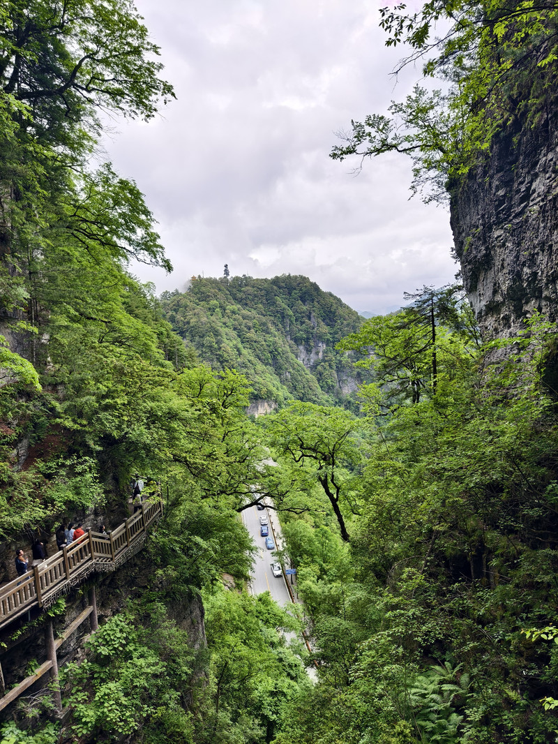 桥上可俯瞰209国道穿崖而过的壮景,远眺原始森林与层叠山峦,云雾缭绕时如置身云端169。部分游客提到行走时桥身轻微晃动,雨雾天气需注意安全。