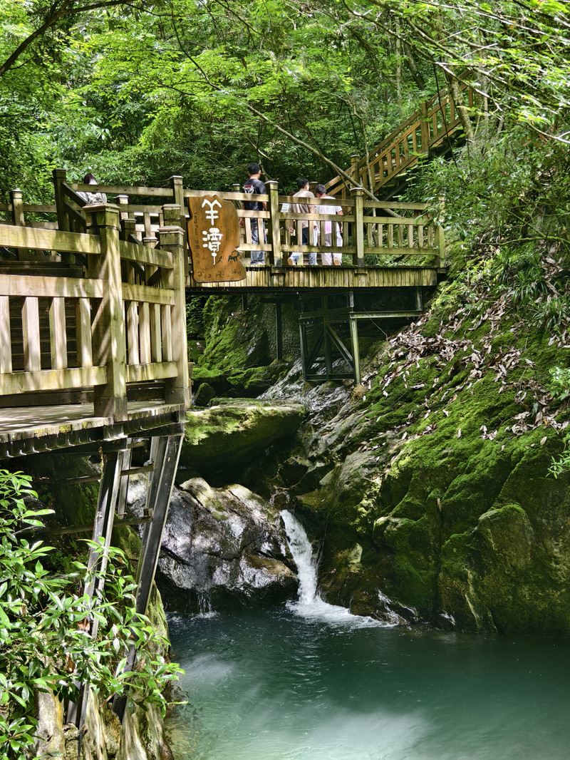 天生桥的形成是亿万年的水流侵蚀,形成了一个天生穿洞,山泉穿洞而下,因此得名“天生桥”。这里的地貌属于典型的喀斯特地貌,湍急的水流顺洞直泻而下,场面十分壮观。穿过天生桥,木栈道相对平缓,漫步其中,看水,听水,欣赏沿途景色,好不惬意。好看的自然景色主要集中在前半段。