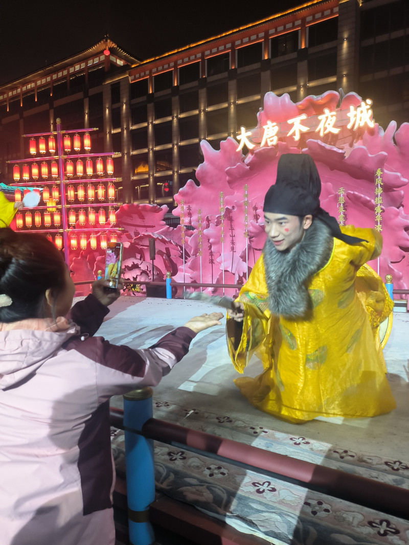 19:00从「贞观之治」雕塑群开始→20:00「盛唐密盒」互动答题→20:30「再回长安」全息秀→21:30「不倒翁小姐姐」终场互动。各点位间隔不超过300米。