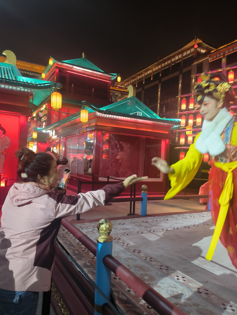 景区内「唐礼坊」提供唐代妆容体验(198元/人),可穿着复原款齐胸襦裙与「西域商人」「波斯舞姬」等NPC对暗号换胡商币。