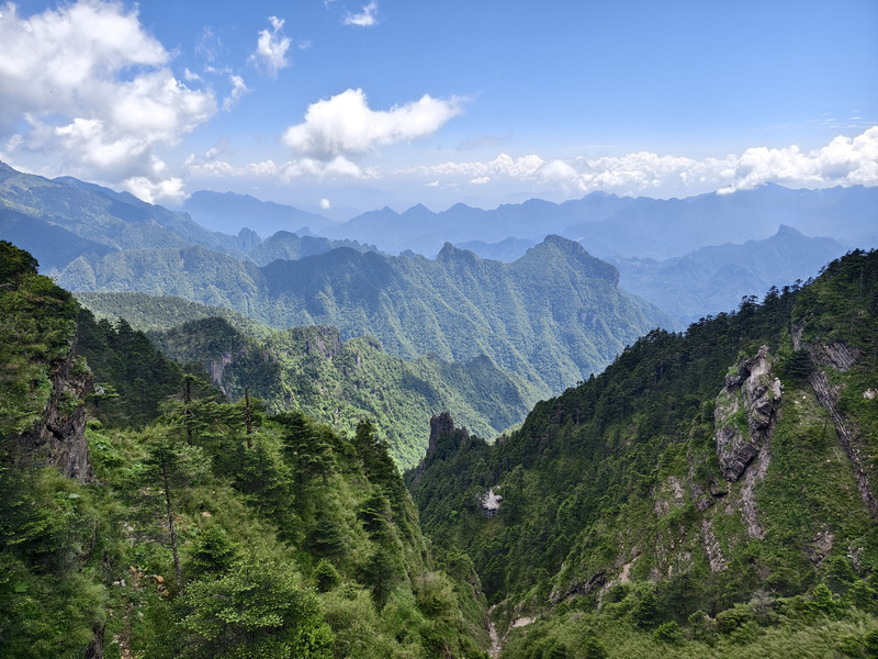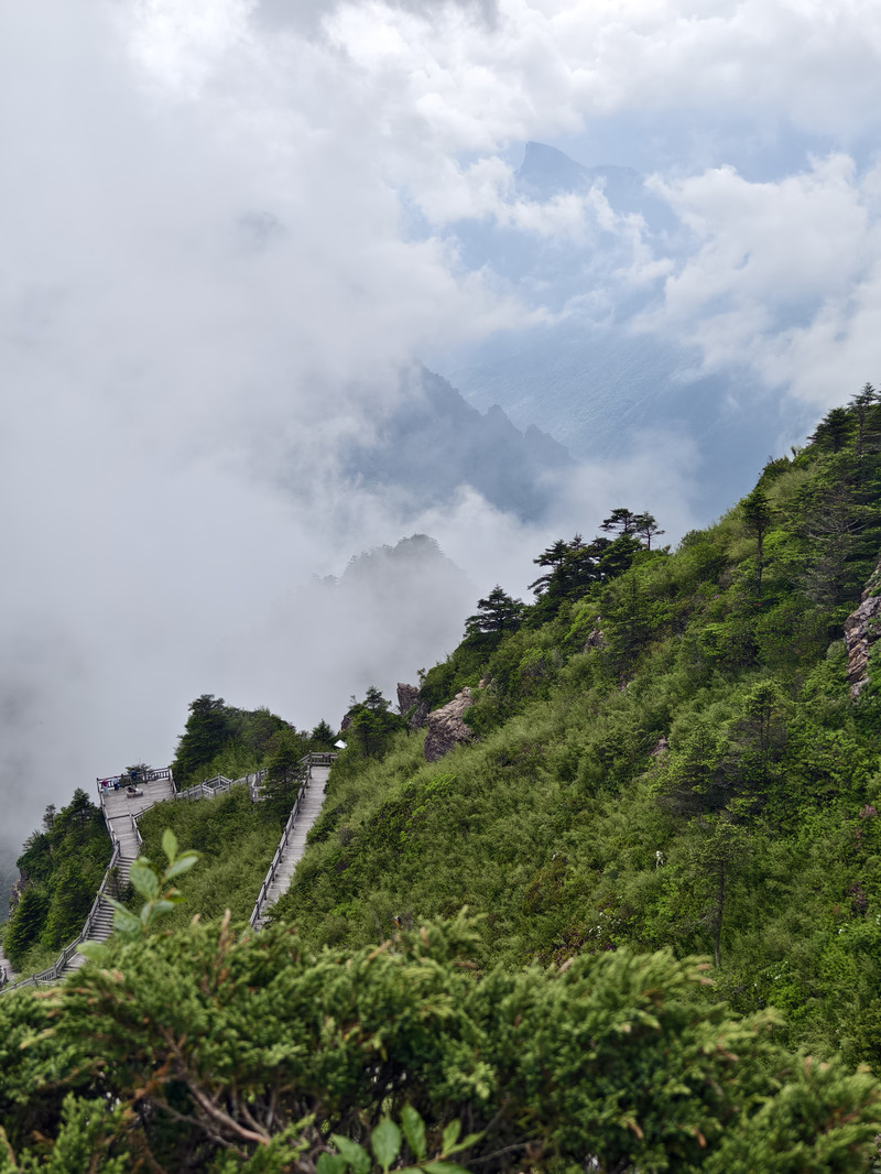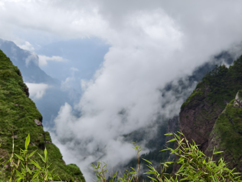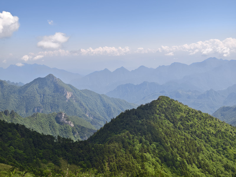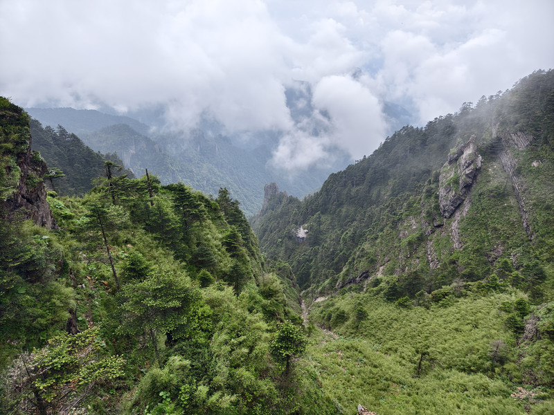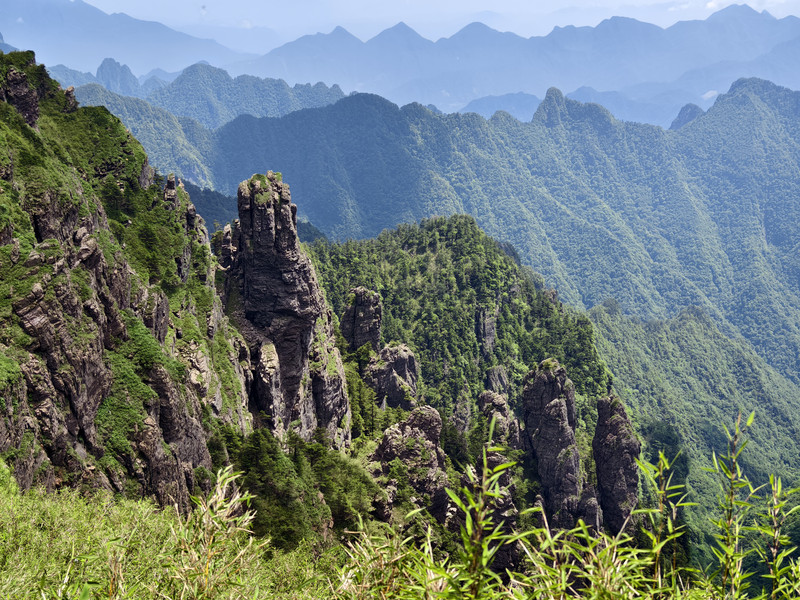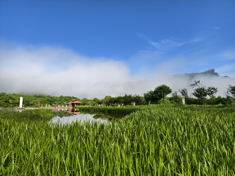 从神农谷到神农顶的途中可见高山草甸、冷杉林、箭竹林等植被,秋季层林尽染,云雾缭绕时如置身仙境。