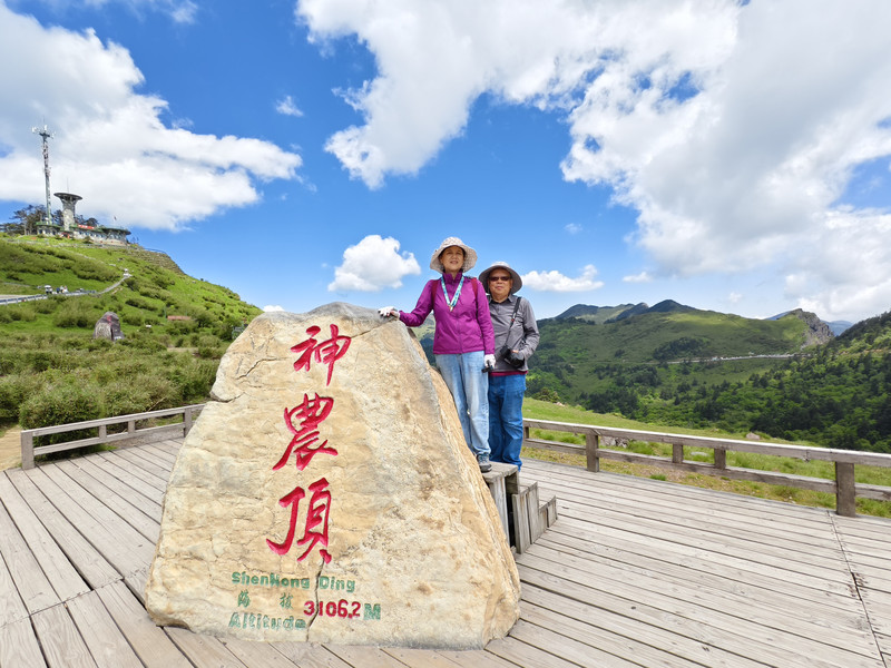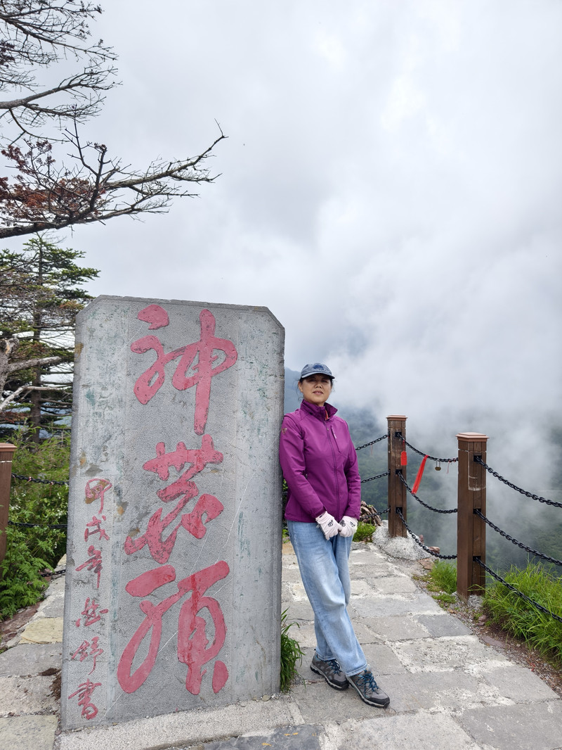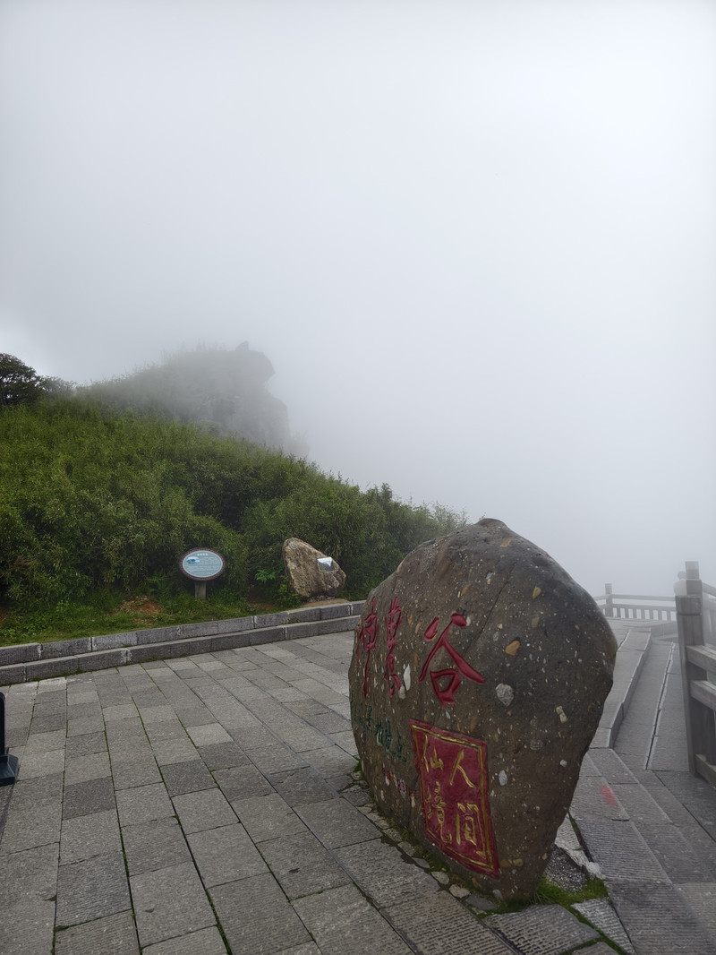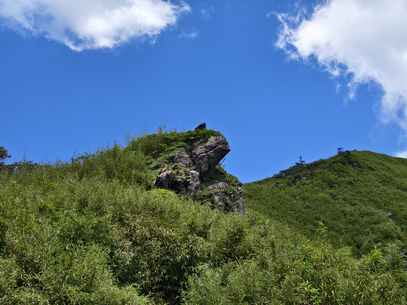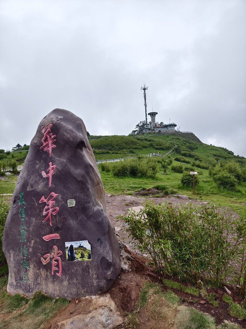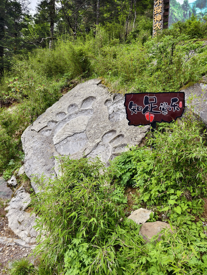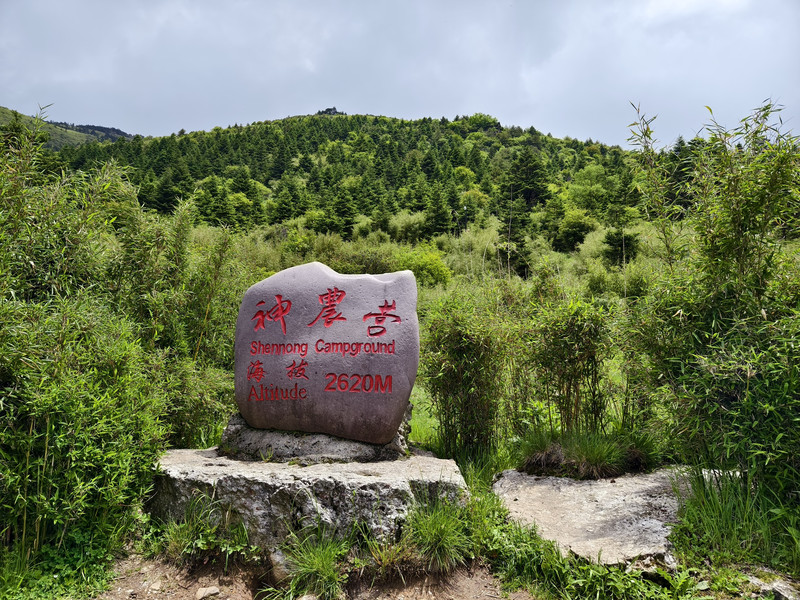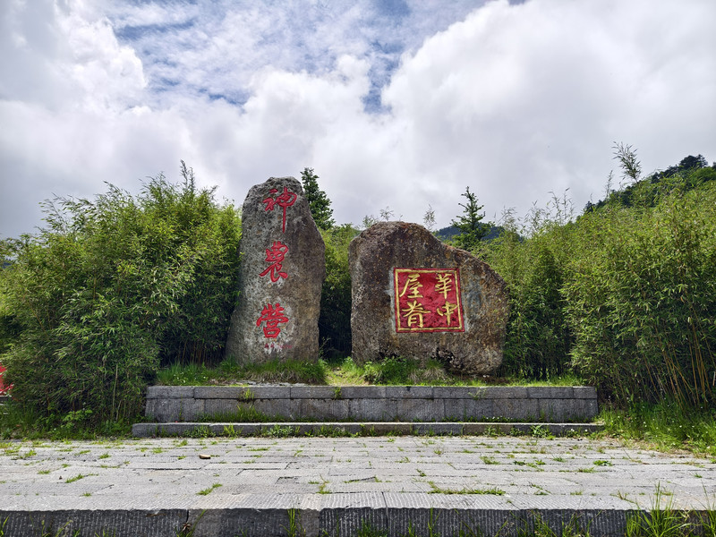 哨所后方制高点有刻有“神农顶”字样的石碑,是游客打卡标志性地点。此处还可远眺神农顶后方的石林和箭竹林景观。