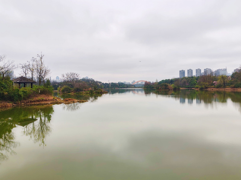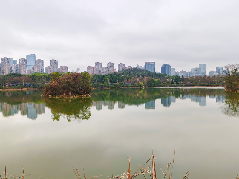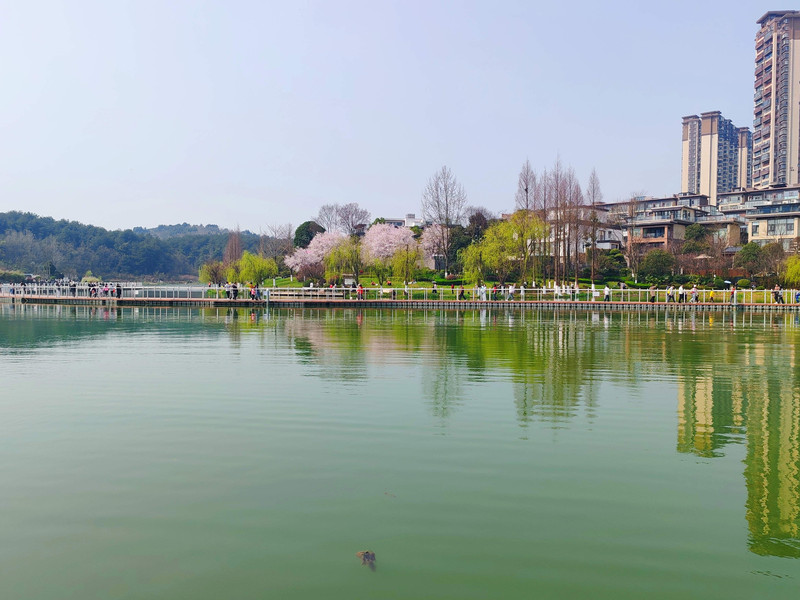 阅山湖公园与甲秀楼的城市风光