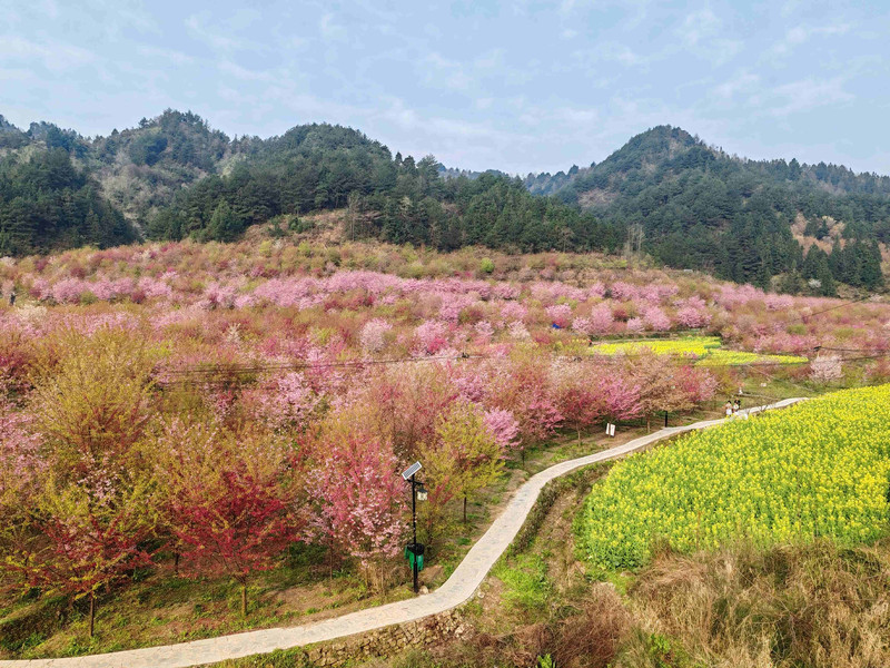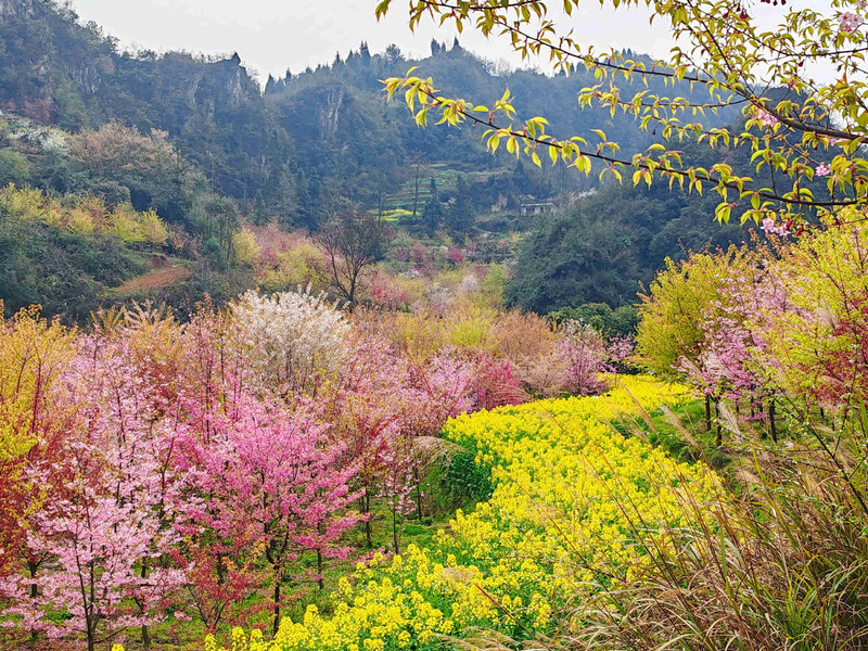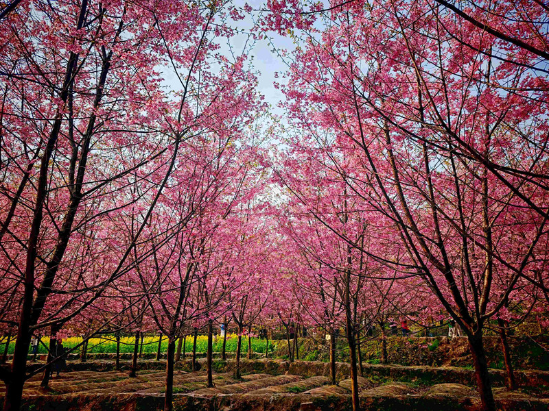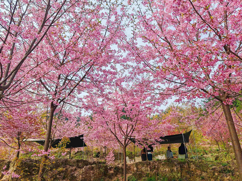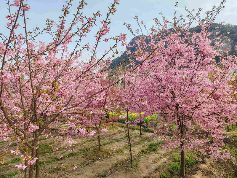 回到贵阳后,你得知平坝的樱花还未开,于是转战上麦城村樱花园。这里的樱花树错落有致,与周边的田园风光相互映衬,美不胜收。你在这里游玩了两个多小时,感受着樱花的浪漫与春天的气息。