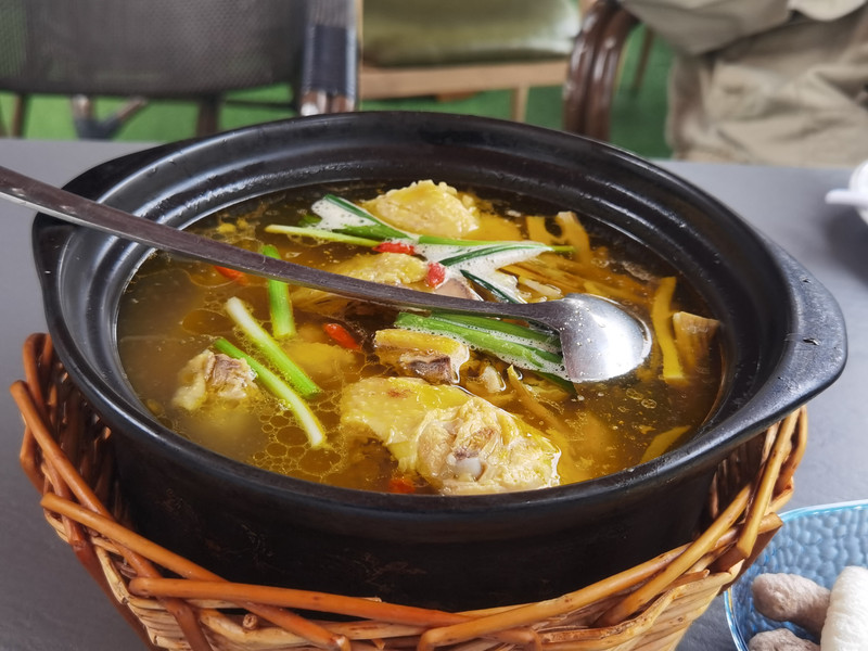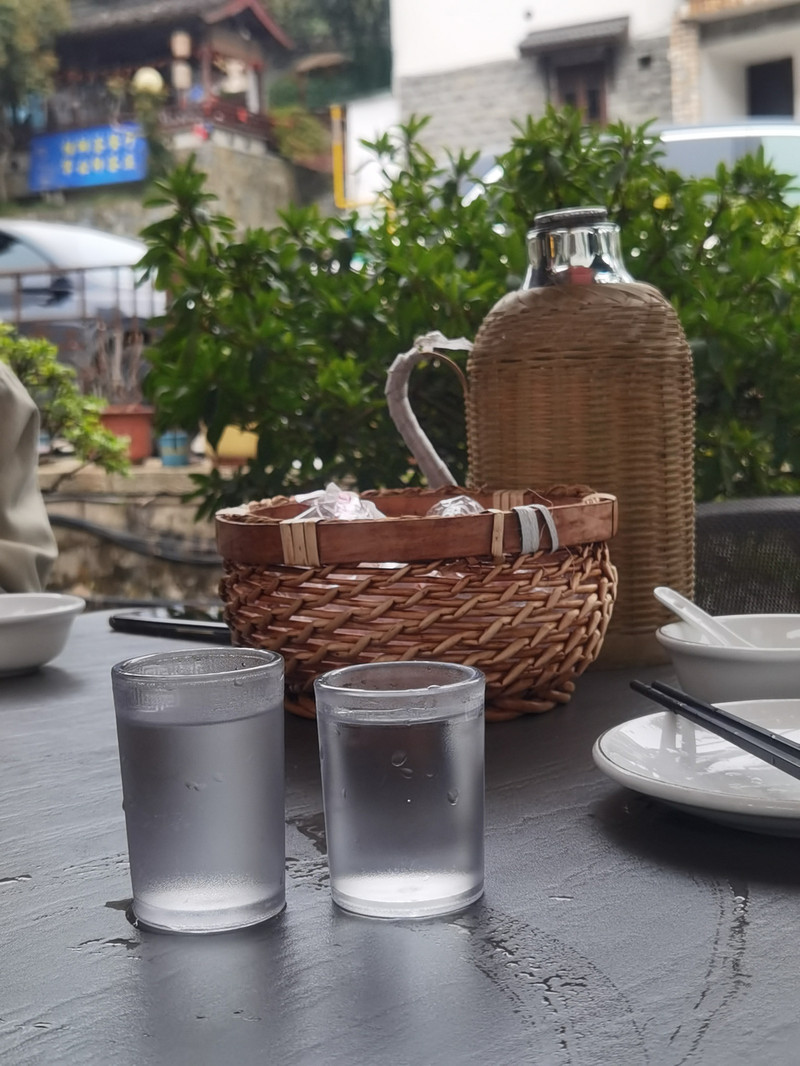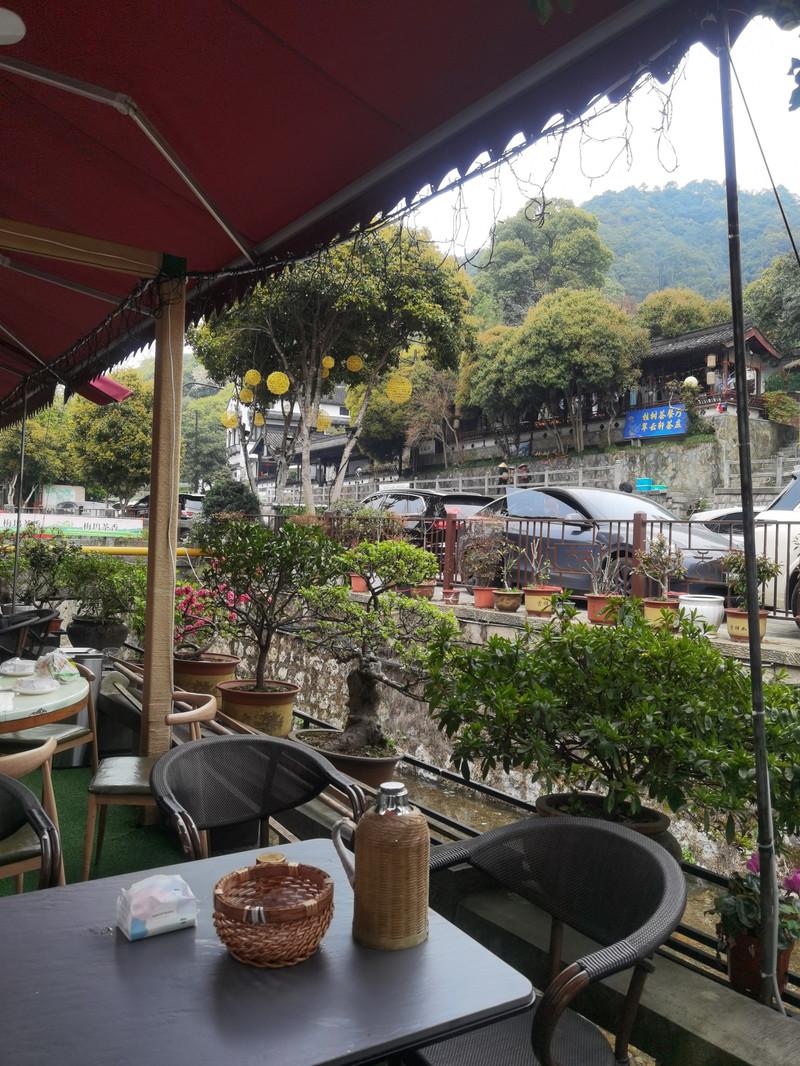- 午餐在茶楼解决,听起来是个不错的选择。虽然等位有点小波折,但最终还是坐到了沿溪沟的桌子,一边品尝美食一边欣赏风景,真是两全其美。
