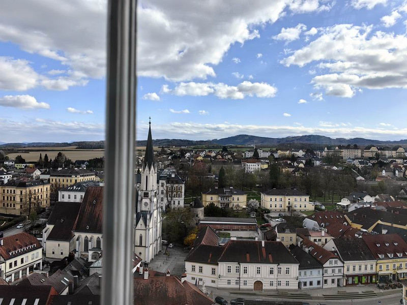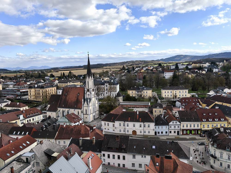 踏上梅尔克修道院的露台,可以俯瞰整个梅尔克小镇, 蜿蜒的多瑙河、一栋栋红顶白墙的房屋, 和绵延不绝的山谷, 尽收眼底。