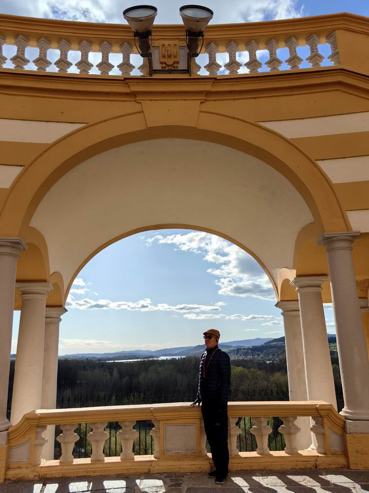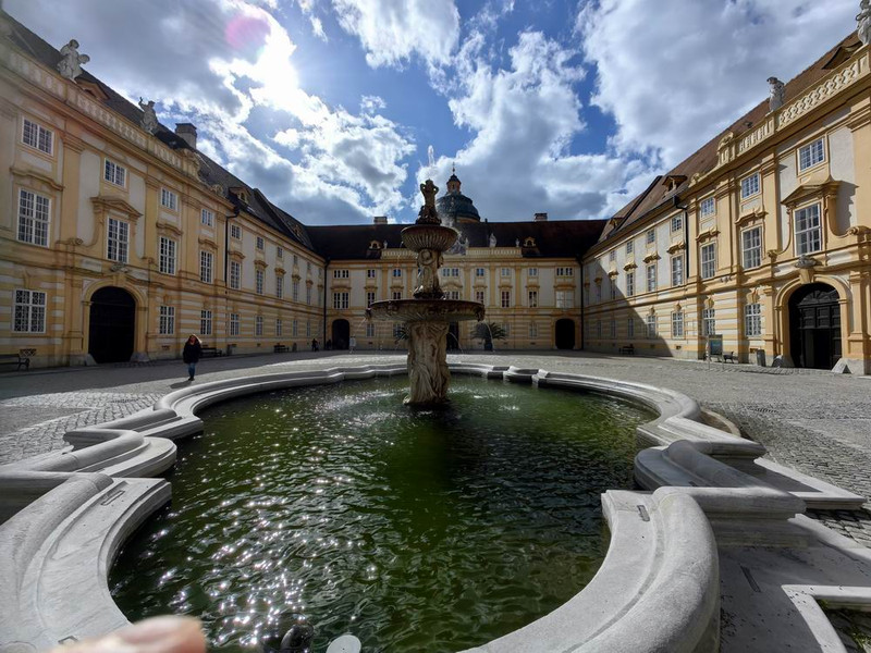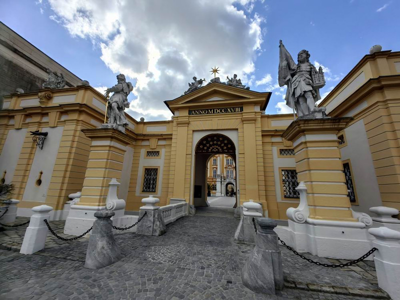 这座以“特蕾西亚黄”为主色调的修道院, 原先12世纪的建筑被大火烧毁后, 修道院于18世纪重建。这是我在梅尔克修道院内拍的纪念照。
